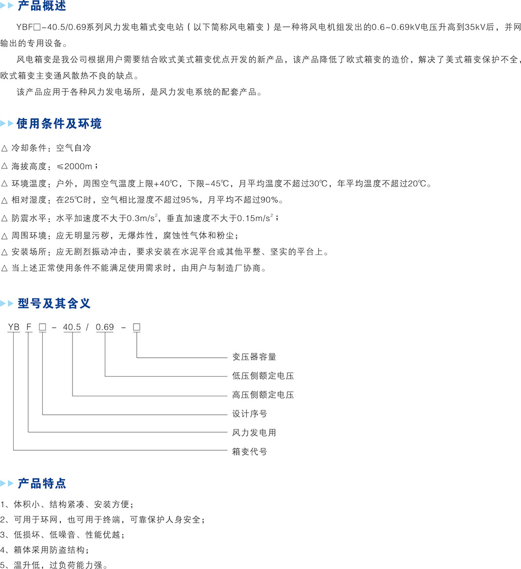 > YBF□-40.5/0.69-□系列風(fēng)電箱變